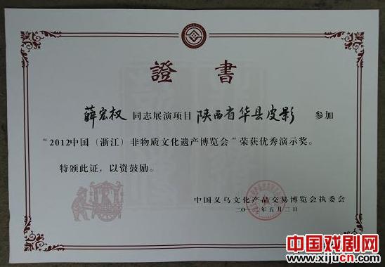 华县皮影第七届中国义乌文化产品交易博览会展演获奖
