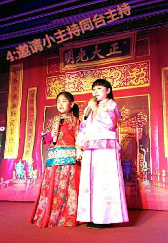 演员们和孩子都准备好了,那就有请两位住持人吧!小朋友来到台上表现的太好了!让孩子多在舞台表现自己是对他们很重要的锻炼!