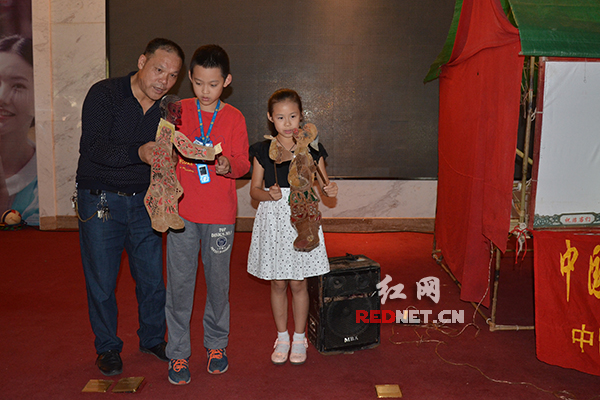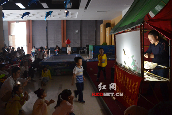 长沙市市级非物质文化遗产项目代表性传承人、朱国强带来了《龟与鹤》、《雄鸡斗蜈蚣》等精彩的皮影戏表演,来自长沙市大同二小、东郡小学等学校的百余组家庭参与学习并开展互动。