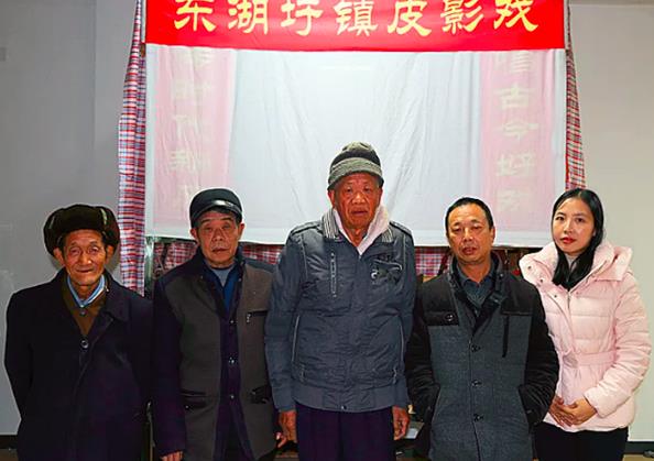 四位老艺人与耒阳一中音乐教师刘致聪留影纪念
