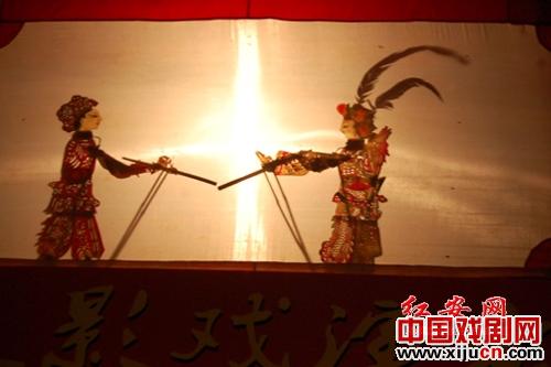 在白炽灯的映照下,皮影戏中人物活灵活现,栩栩如生。