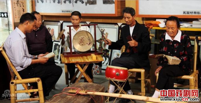 何泽华领衔的皖南皮影戏剧团,现在演员只剩5人,最年轻的也已经60多岁。因为几乎是皖南皮影戏当下的“唯一”,这个老迈的剧团依然能接到演出邀请。图为何泽华带着演员排练。