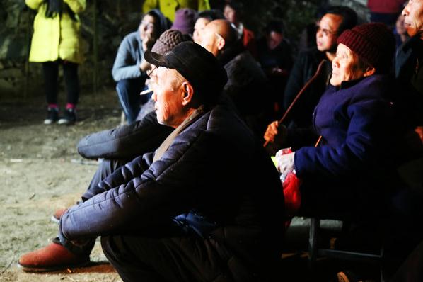 坐在舞台前的村民们