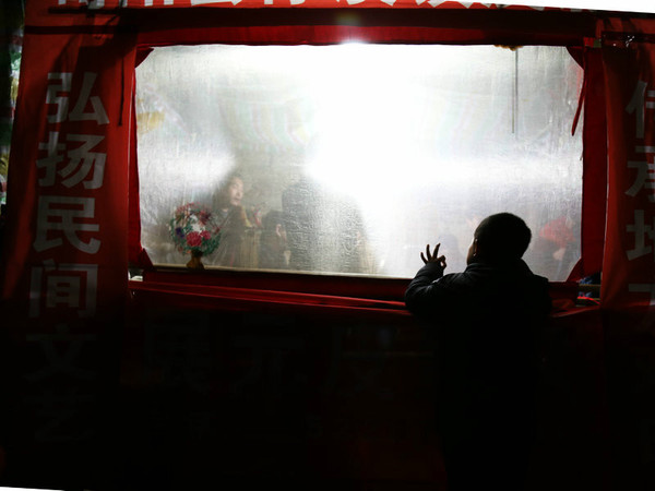 围在舞台周围,很多人还从来没看过皮影戏