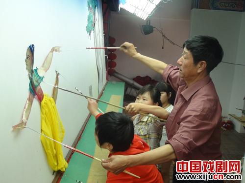 而皮影表演更有很多看点。在皮影老艺术家刘立新的指导下,皮影戏上的白雪公主跳起了芭蕾舞。动作虽然很简单,但一米高的影人需要三个袖珍演员来完成(一个拿身子,一人拿双手,一人拿双腿),当三个演员陪着白雪公主跳了一会芭蕾后,已经大汗淋漓。