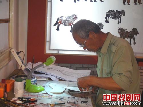皮影人物及景片的雕刻也在如火如荼的进行,剧团专门请来了河北丰润的皮影雕刻大师李树稳老师雕刻皮影人物,并现场指导袖珍人们学习雕刻皮影、缝制皮影。