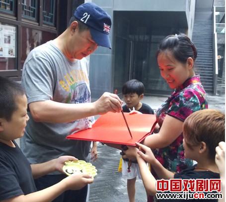 张铁林老师用毛笔写下了:皮影戏一定要继承下去。看得出,作为一个文化名人,作为一位普通的父亲,张铁林很希望他的儿女们能够了解古老的民族艺术,希望这门艺术不至于消亡。而对于曾经伴随自己成长的重要娱乐活动的皮影戏,铁林老师也必定是感慨颇多。可惜时间太紧,我们与铁林老师挥手握别。没有太多时间与张铁林老师探讨我们演出的皮影戏与他儿时的皮影有没有区别,与记忆中的差距大不大?如果不如当年的影戏,那可能会让他感到伤感……