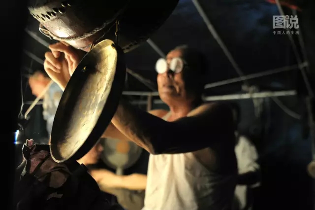 如今,皮影戏班中挑大梁的任务落在了孙子孙伟的身上,孙景发老人一般会坐在幕后左侧,负责锣鼓敲打和弹奏各类弦乐器,有时也会担任主唱,引吭高歌。孙景发的乐器大都是自己土制的,虽然陈旧,但是声音十分清澈响亮。