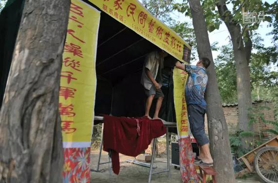 皮影戏班的演出舞台比较简陋,只需要几根钢管、几块木板和幕布。
