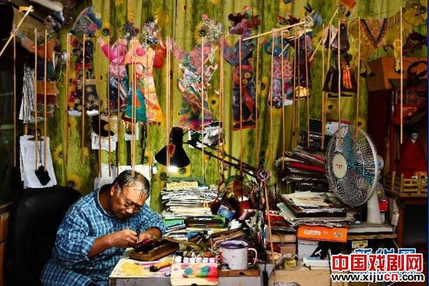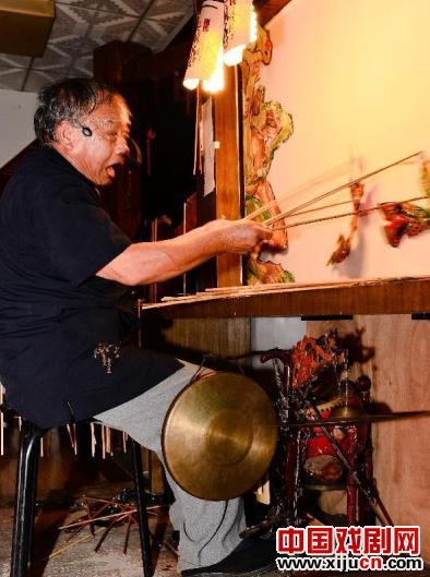 在泰安市弄影轩,范正安在表演《泰山石敢当》(10月21日摄)。年近七旬的范正安是国家级非物质文化遗产泰山皮影戏的第六代传人。8岁时,他用捡废品卖的5分钱看了一场皮影戏,从此便着了迷。随后,范正安拜泰山皮影戏第五代传人刘玉峰为师,钻研皮影技艺,一干就是60余年。与其他地方团体协作表演皮影戏不同,范正安靠自创的“伴奏系统”:一面鼓、一面锣、一个梆子,一个人制作、表演、伴奏、操纵、演唱、道白……把“单人皮影”演绎得妙趣横生、音影传神。范正安是泰山皮影戏这门民间艺术目前的唯一传人,为了能让濒危的有着400多年历史的泰山皮影戏“活”下来,2009年,64岁的范正安不顾家人反对,筹措40万元创办了皮影戏小剧场——弄影轩,在这里展演皮影戏,组织学生免费专场演出,开发皮影衍生产品,将泰山皮影这门传统艺术推向市场。让范正安欣慰的是,他的儿子、孙子和七八个徒弟,已经成为他的传承人,泰山皮影戏不再是他一个人的“独角戏”。