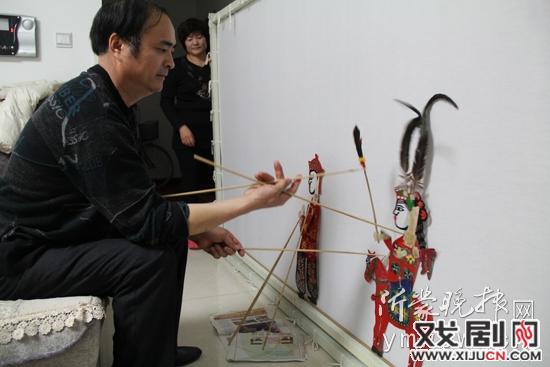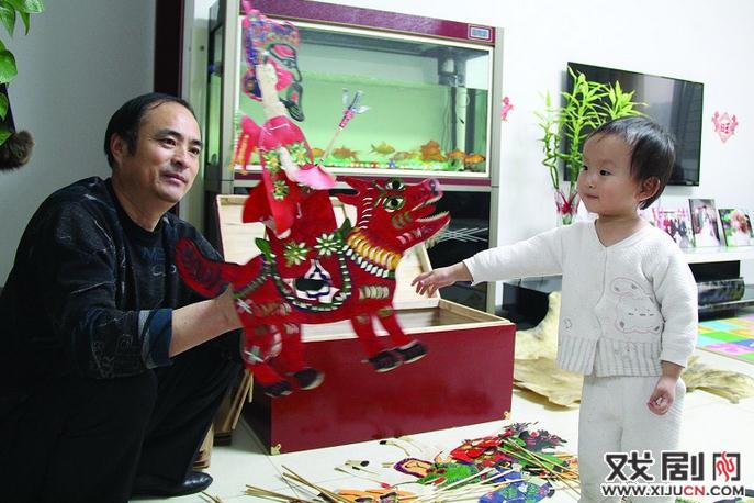 “我要,我要,这个好看。”见到五彩斑斓、惟妙惟肖的皮影作品,孙兰玉还不到3岁的小孙女孙梦涵嚷着要玩。见到小孙女对自己的皮影作品如此喜爱,他高兴地将皮影递过去,拿到皮影的小梦涵竟有模有样地耍起来。见到爷爷在幕布后操作皮影,她也好奇地凑到幕布前摸来摸去。“儿子和女儿都对这个老手艺不怎么感兴趣,没想到小孙女倒是挺喜欢。”孙兰玉的妻子刘开芹兴奋地说,老一辈人都把皮影叫做“土电影”,而孙家的皮影已有150多年的历史了,孙兰玉是第四代传人。