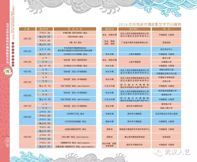 2016中华传统木偶皮影艺术节自6月11日开幕,到今天已陆续在中南剧场大剧场、汤湖戏院及武汉市五里墩小学、楚才小学、珞珈山街幼儿园、育才幼儿园、长春街小学、汉铁小学上演多台精彩木偶剧。
