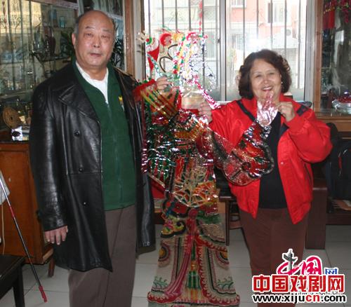 崔永平、王淑琴夫妇和他们制作的大型皮影(中国网 任子鹏 摄影)