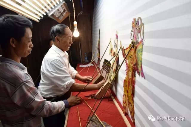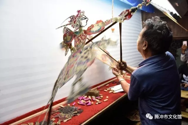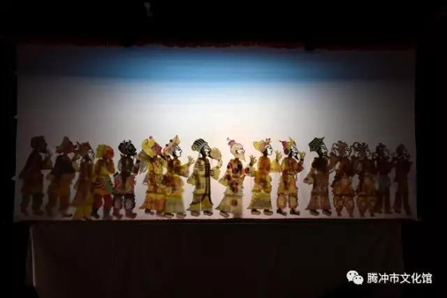 皮影戏,俗名灯影子,又名“皮人戏”,是腾冲流传久远、影响广泛的艺术形式。据腾冲皮影艺人讲,腾冲皮影是明朝初年从湖广、四川一带传入的,至今已有六、七百年的历史了,有据可查的历史,至少已有200余年。腾冲皮影戏剧目题材丰富多彩、故事情节曲折动人,人物形象个性鲜明,表演操作灵活自如、唱腔圆润优美,对白生动风趣,给人以很高的艺术享受。其靠子既是皮影戏的表演道具,又是美轮美奂的民间艺术精品,雕刻精美,形象逼真、百人百脸、百物百样,构思匠心独运,造型夸张风趣,具有极高的艺术审美价值和收藏价值。作为云南乃至整个西南至今唯一保持不间断演出活动的民间皮影戏,腾冲皮影戏对研究汉文化特别是传统艺术从中原向西南边疆乃至向东南亚的传播提供了极其重要的实证,对研究古代戏剧及社会人文发展演变也具有极重要的参考价值。