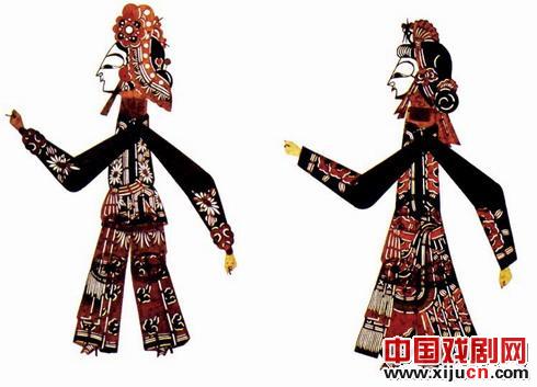 河北唐山皮影戏中的白蛇、青蛇的造型。
