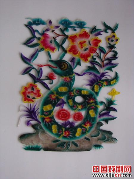 甘肃地区皮影艺术雕刻作品《春天里的蛇》
