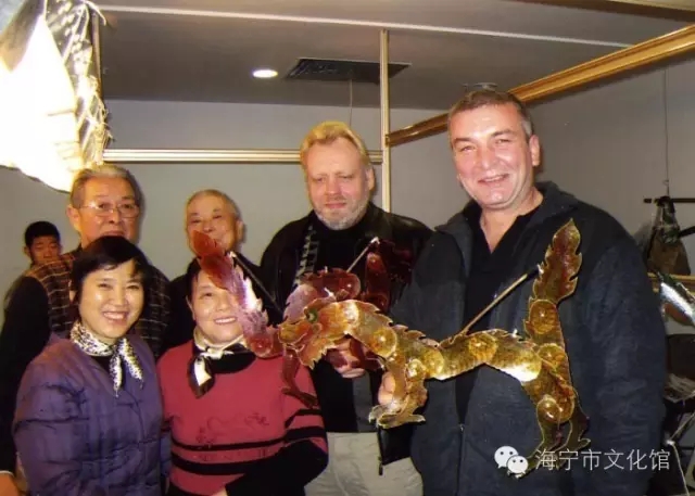 德国游客观看海宁皮影戏与郭志英合影