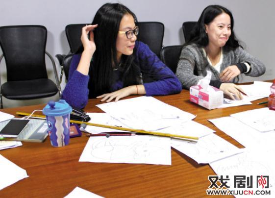 陆丰市皮影戏传承保护中心招收了学动漫设计的年轻人来设计新戏中的人物形象(钟哲平/摄)
