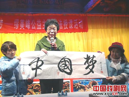 在“中国梦”的激励下,2013年3月22日下午,著名书法家缪美峰女士来到位于清华西门外的北京龙在天皮影剧团,现场指导50名袖珍人皮影戏演员挥毫,练习传统书法。一笔一划写梦想,字字含情墨飘香,缪美峰女士详细的解读,吸引了所有的袖珍演员现场嘉宾。