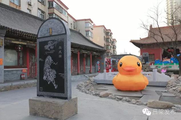大殿檐柱上挂一副木刻楹联,上联“孝河义水粮山煤海千古宝地,”下联“秧歌偶戏影调乱弹万民销魂。”