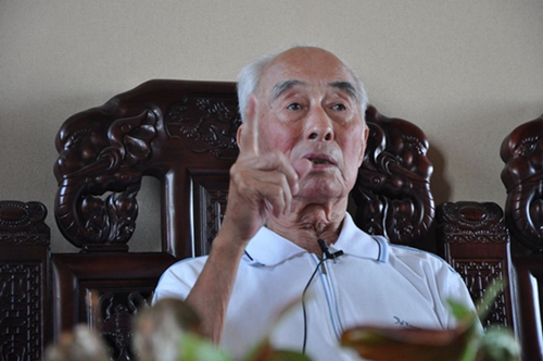 从迁安蓄牧局离休的90岁老先生郑昆,曾参加过抗战,满头白发,精神甚好。