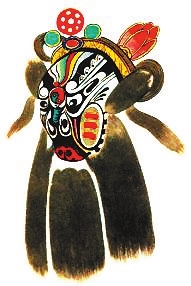 畅金山具有花脸的条件和天赋,头大、眼大、嘴大,而且嘴角下垂,虎头虎脑。他所创造的脸谱,也就是董志塬秦腔脸谱。
