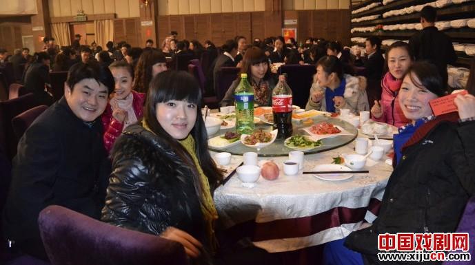 今天是个好日子,英协剧场灯火通明,蓬荜生辉,华丽的大厅摆满数桌酒席。省人民会堂,省曲剧团,英协集团三家友好单位2012新年团拜会晚上六点正式开始,会上孟团长代表曲剧团发表了热情洋溢的讲话,高度赞扬了以罗立芳董事长为首的英协集团常年对戏曲界的支持和厚爱!他的慷慨相助感动着我们每一个戏曲工作者。让我们也敬他一杯,我们需要这样的董事长。。。。