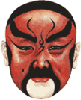 太监脸:专用来表现擅权害人的宦官 ,色彩只有红白两种 ,形式近似“ 整脸 ”与“ 三块瓦脸 ”, 只是夸张太监的特点;脑门勾个圆光,以示其阉割净身,自诩为佛门弟子。 脑门和两颊的胖纹,表现出养尊处优 脑满肠肥的神态。