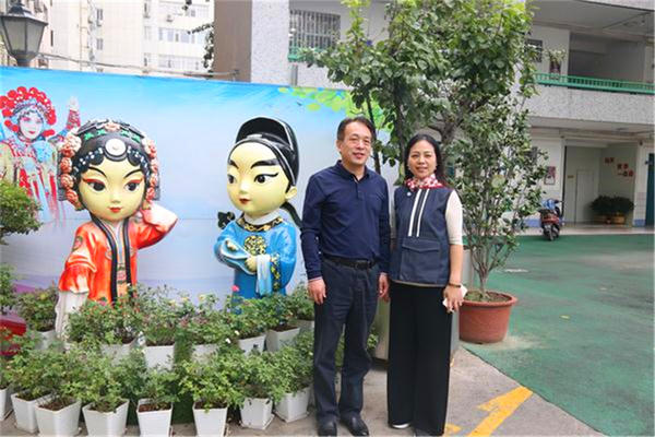 文化路第二小学校长金辉详细介绍了学校从顶层设计入手,整合课程资源,课程化推进“戏曲进校园”各项活动的具体做法和经验。文化路第二小学极具特色的戏曲人物雕塑、脸谱墙、名家影像、戏曲教材,以及戏曲版画、戏曲人物线描、戏曲面塑等校园戏曲文化和学生戏曲作品,引得观摩团成员频频驻足观看拍照。