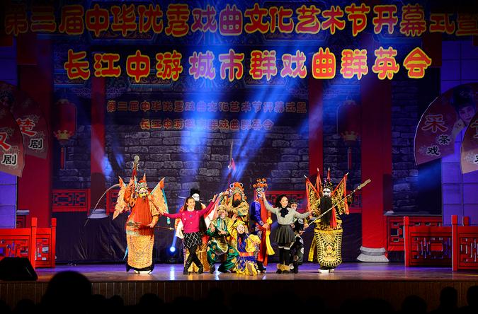 第三届中华优秀戏曲文化艺术节暨长江中游城市群戏曲群英会于4月9日晚7点半在武汉大学信息学部大学生活动中心靓丽启幕,开幕式上,长江中游城市群同唱一台戏,湖北武汉的京剧、汉剧、楚剧、黄梅戏和江西南昌的采茶剧、湖南长沙的花鼓戏交相辉映,尽展华芳。