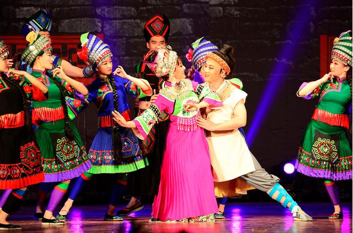 我院受邀参加开幕式演出,著名黄梅戏表演艺术家杨俊、著名楚剧表演艺术家詹春尧演出了原创土家风情黄梅戏《妹娃要过河》片段。