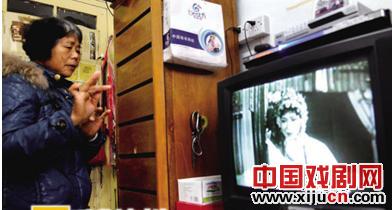 昨日,海盐县文联传达室里传出甜美的越剧唱腔,吸引着路人。记者循声走近细看,原来是一位老大妈正对着电视机练习越剧唱腔。