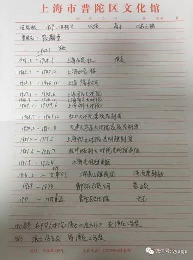 1979年-1985年05月退休 在上海普陀区文化馆做文艺工作。