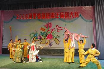 这次大赛共分为三天,全院上下都非常重视这次比赛,一早已经将赛场布置好了。今天由一团15个作品参赛。生旦净丑各行当都有参赛剧目,演员也全部穿戴上场,做到认真,到位。整场比赛气氛热烈,参赛剧目丰富精彩。