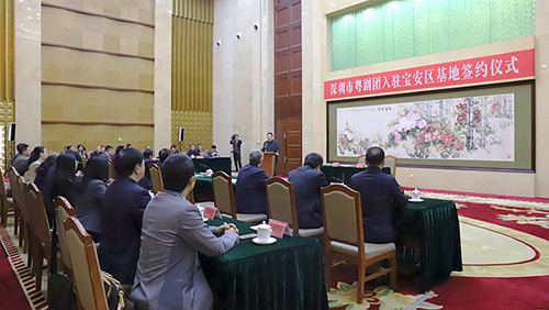 粤剧是广府文化的核心内容之一,是继昆曲之后我国第二个入选联合国教科文组织“人类非物质文化遗产名录”的戏曲品种,在传承文化、涵养道德、增强文化自信等方面具有独特作用。为促进粤剧的传承发展,丰富宝安市民的文化生活,助力“湾区核心、智创高地、共享家园”建设,3月8日上午,宝安举行深圳市粤剧团入驻宝安区基地签约仪式。深圳市市委常委、宣传部部长李小甘,市委宣传部副部长刘文斌,市文化广电旅游体育局局长张合运、副局长钱强,宝安区委书记姚任,区长郭子平,区领导黄盛华、蔡英权出席签约仪式。