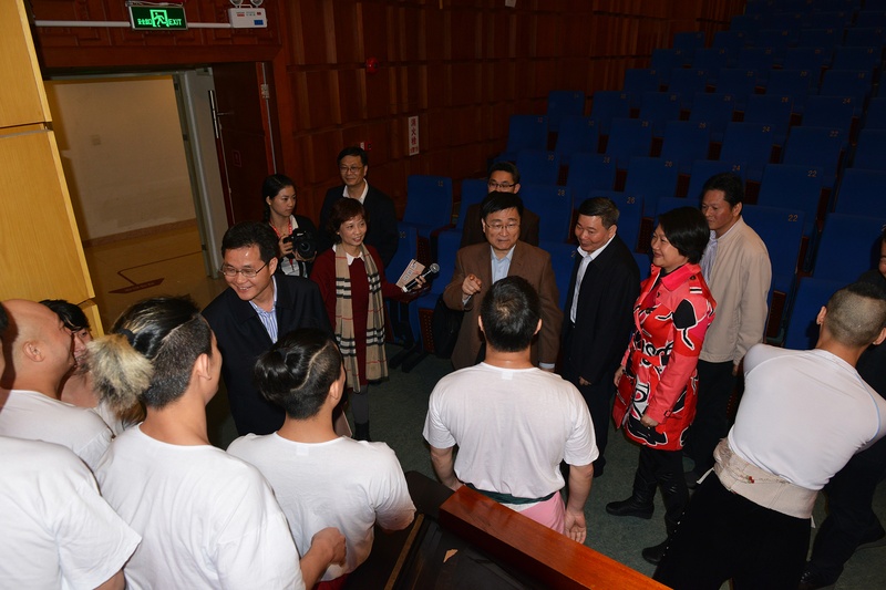 蓝佛安副省长一行抵达我院后,在剧院领导班子的陪同下观看了广东粤剧院发展历程图文展览和粤剧折子戏《武松大闹狮子楼》的排练。蓝副省长对粤剧艺术十分重视,他表示“现在国家非常重视文化强国、文化强省的建设,最近国务院也发布了《国务院办公厅印发关于支持戏曲传承发展若干政策的通知》,粤剧的历史源远流长,广东的地方戏曲众多,其中粤剧是影响比较广泛的,我们要保护、传承好粤剧,做到与时俱进,开拓创新。我觉得粤剧大有前景,广东省政府会对你们一如既往的支持。”