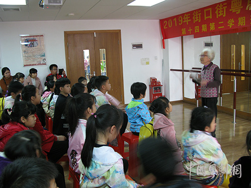 街口街粤剧文化协会顾问姚冠冰在开班仪式上讲话,新学期开始了,协会全体志愿者不忘初心,牢记使命,继续秉承关爱宗旨,传承广府粤剧文化,习礼育人。同时,粤剧文化协会和小红豆艺术团为孩子们提供很好的平台,今年将着力排演《美丽的艾米小镇》、《高歌颂西塘》现代儿童粤剧,为乡村振兴特色小镇宣传做出贡献。同时参与国学儿童剧以及电影《神在囧途》的拍摄,让孩子们增长见识,施展才华,锻炼成长。冰婆婆是小红豆校外辅导站、小红豆艺术团创始人,今年85岁但思路敏捷,话语流畅,激情洋溢,扣人心弦,全场报以热烈掌声。