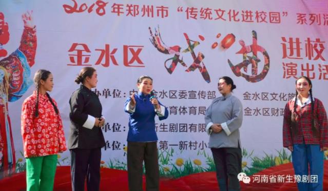 为传承戏曲艺术,弘扬中华优秀传统文化,中共金水区委宣传部、金水区文化旅游局、金水区教育体育局、金水区财政局携手河南省新生豫剧团举办了“戏曲进校园”演出活动,目的是为师生们创造近距离感受戏曲艺术魅力的机会,提高他们的艺术审美和文艺素养,陶冶高尚的道德情操,激发学生热爱祖国文化、热爱家乡的美好情感。