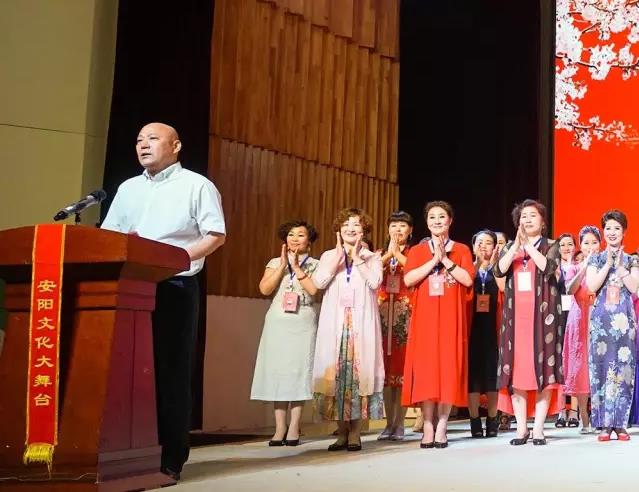 安阳市文化广电新闻出版局副局长刘英芹祝贺张宝英喜收新徒并感谢三位艺术家莅临安阳文化大舞台出席张宝英收徒仪式。